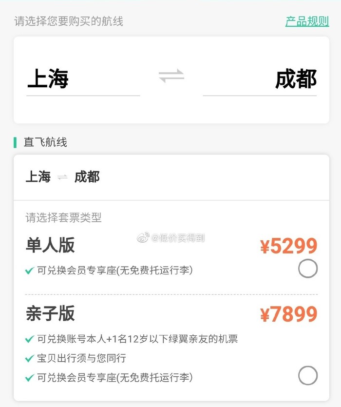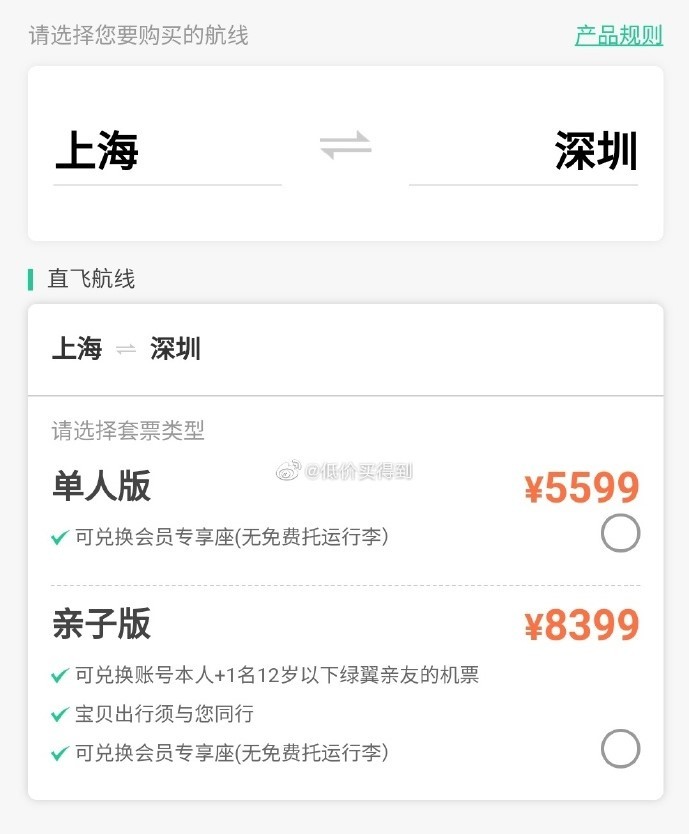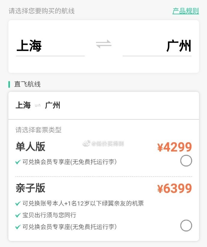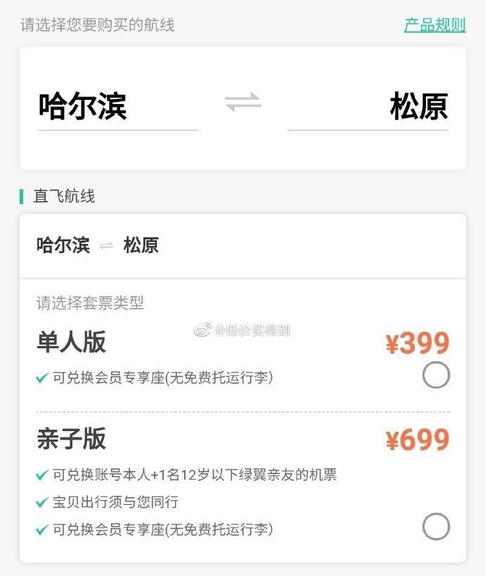 固定航线多次往返权益,价格399元起(重点在这个“起”字),估计根据航线不同,价格会有波动。