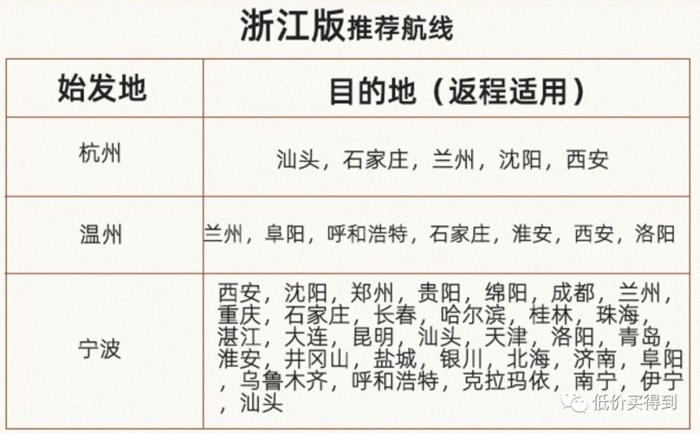 有杭州、宁波、温州出发,航线最多的是宁波,有30条左右。