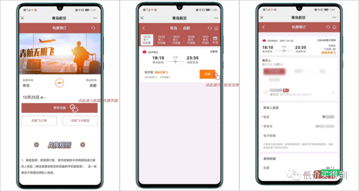 11.1 10点起在青岛航空微信公众号兑换航班。
