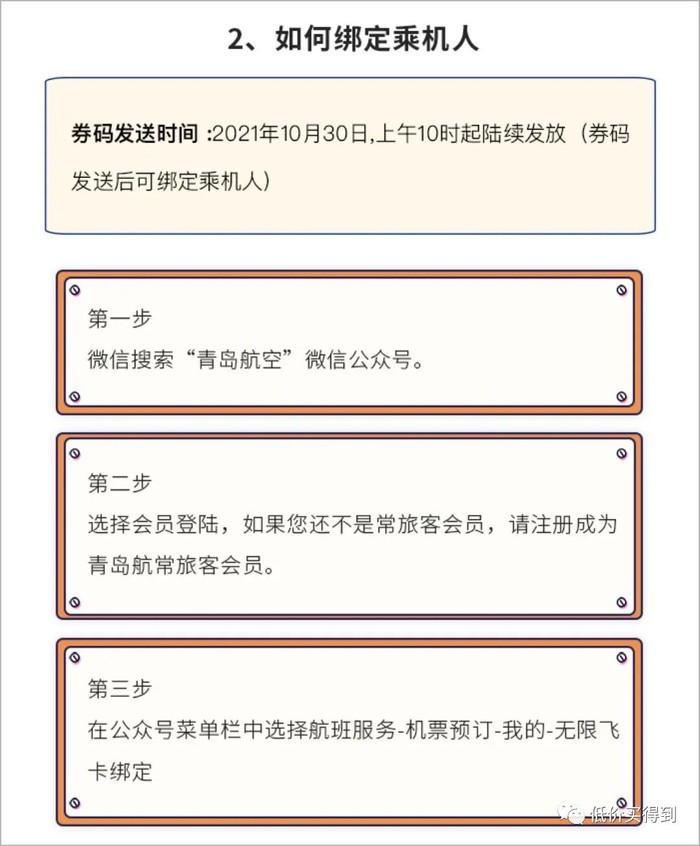 在京东购买后,会收到券码,然后凭券码到青岛航空微信公众号绑定乘机人。