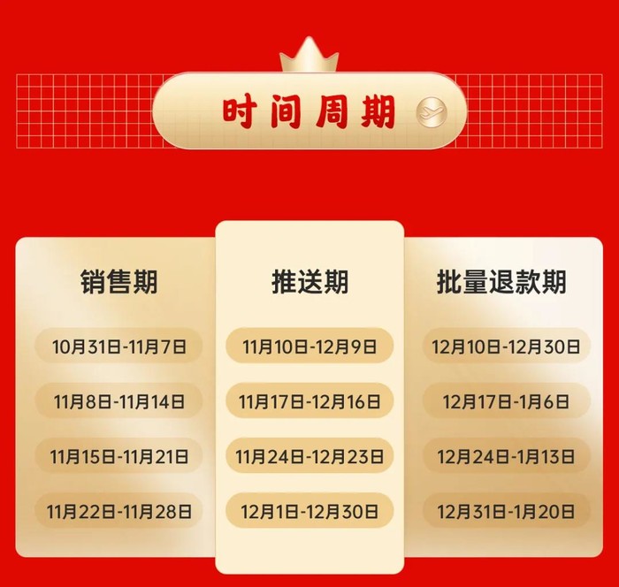 10.31 晚上20点开卖,预计销售周期一直回到11.28。