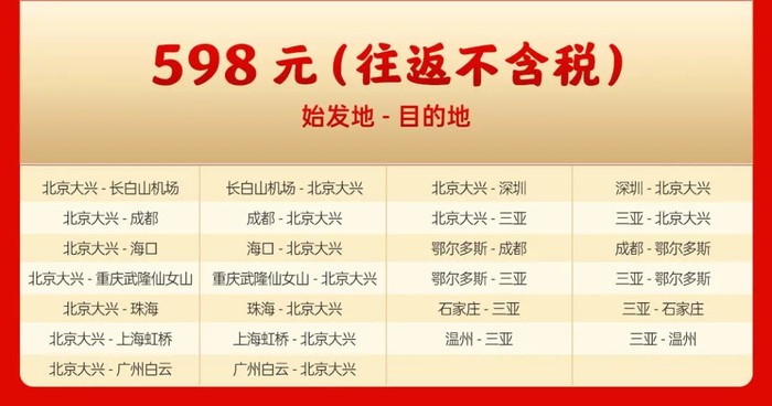 价格298元~598元,根据航线不同而不同,往返税费另算,一般100元。
