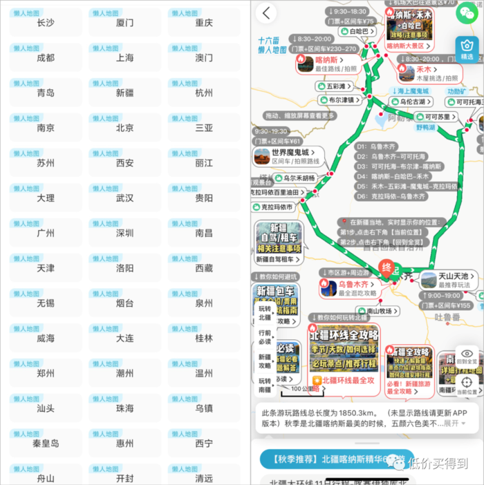 “十六番旅行APP”中,目前已有80多个地区/城市有“懒人地图”,行程线路安排、景点、美食都标在了图上,超直观,非常适合搭配快乐飞,打卡各个城市。