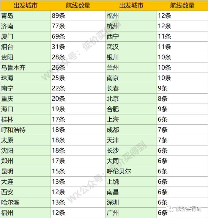 北上广、成都,山航航线则比较少,一般不推荐。除非你需要在固定城市之间往返多次(回家探亲、异地恋之类的)。