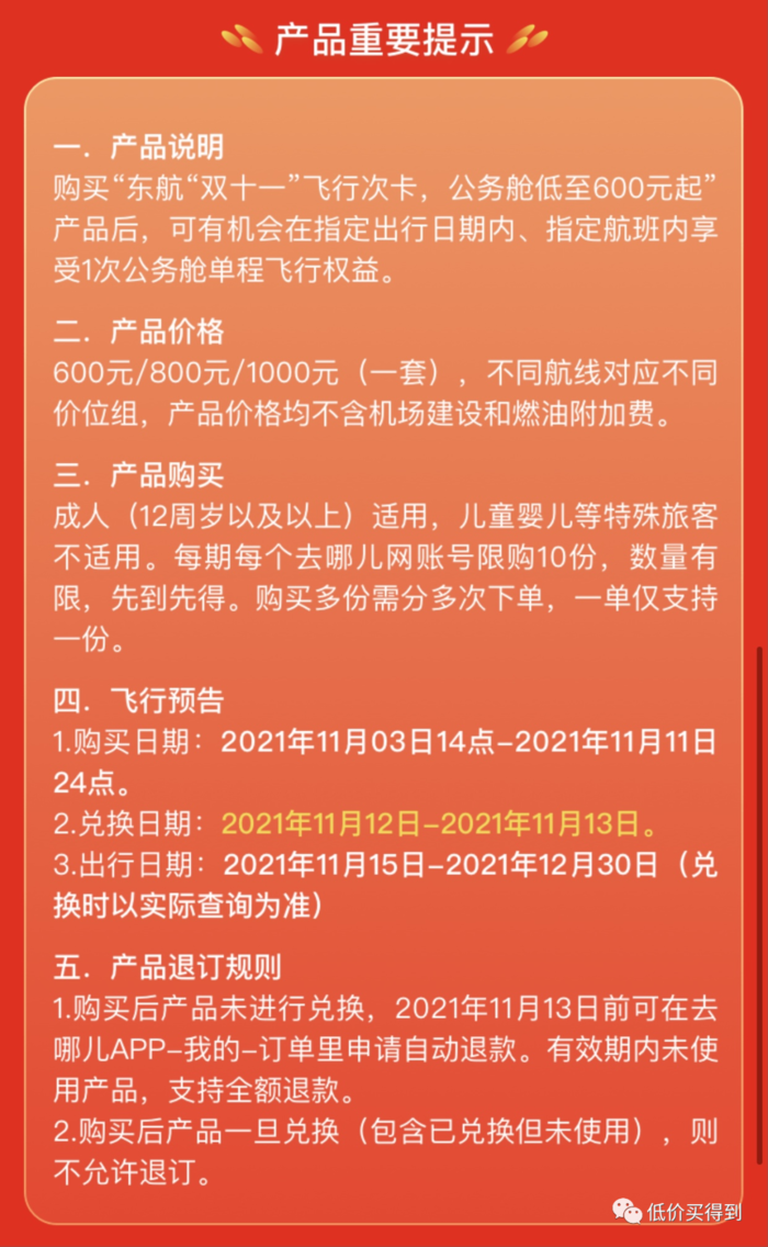 再来看看公务舱版的东航次卡。也是11.12-11.13兑票,11.15-12.30出行,购买平台去哪儿APP-机票页面。