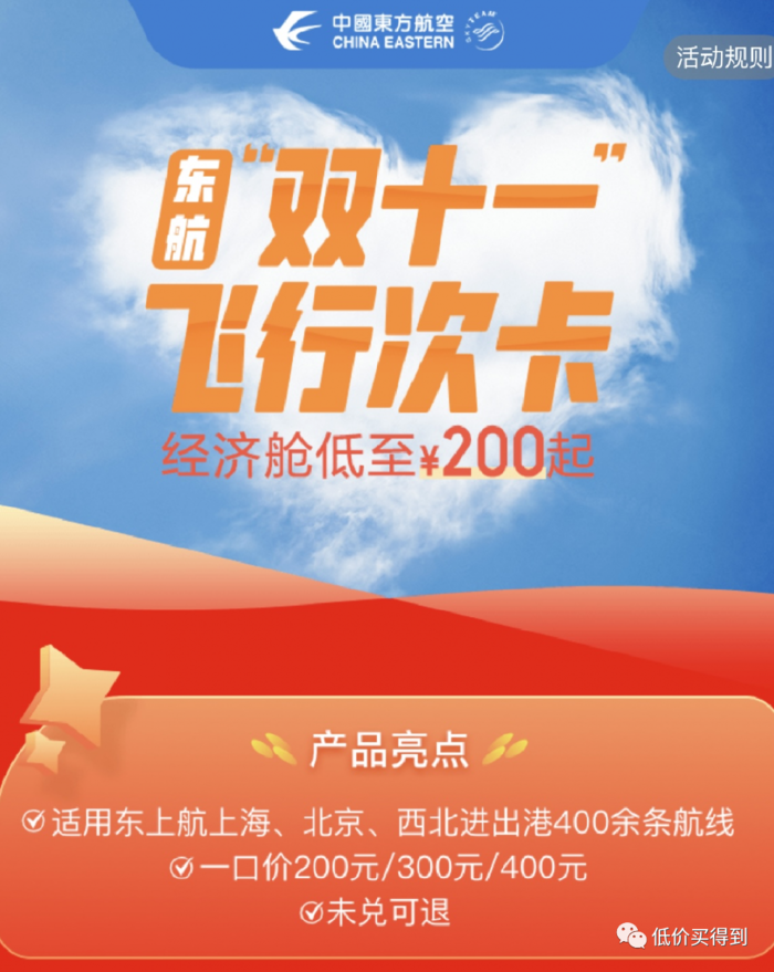 适用于东航上海、北京、西北进出港的400多条航线,随便选,每个帐号最多买10套,每套可兑换一张机票,税费另付,未兑票可全额退款,一旦使用不能退!