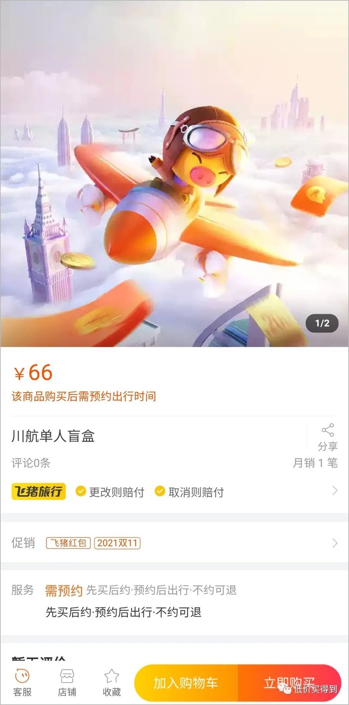飞猪川航单人盲盒曝光,页面目前显示 66元,暂不确定开卖时间。