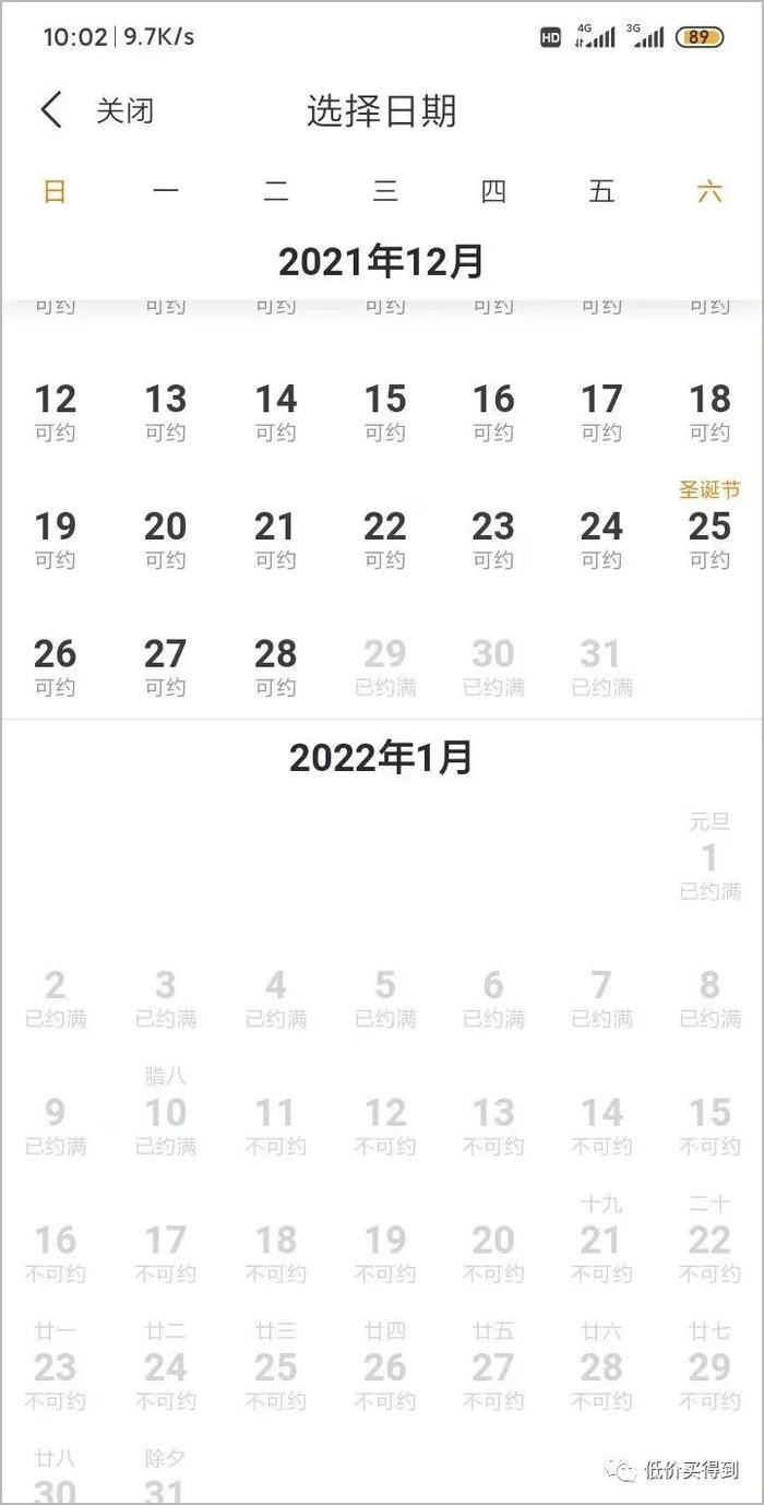 规则显示飞到2022.1.10,但10点准时进去,深圳-上海,12.29~1.10已经全是“已约满”状态。
