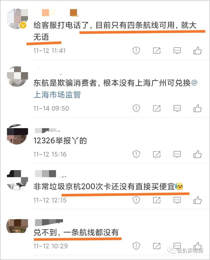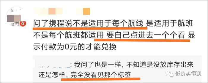 微博上也有网友反馈:问了客服,不是适用于每个航线,要自己点进去一个个看,有相应的标签、付款票价0元,才能兑换。