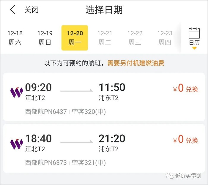 重庆飞上海浦东,12.20之前很多日期可兑换。但是,兑换这条航线很不划算。