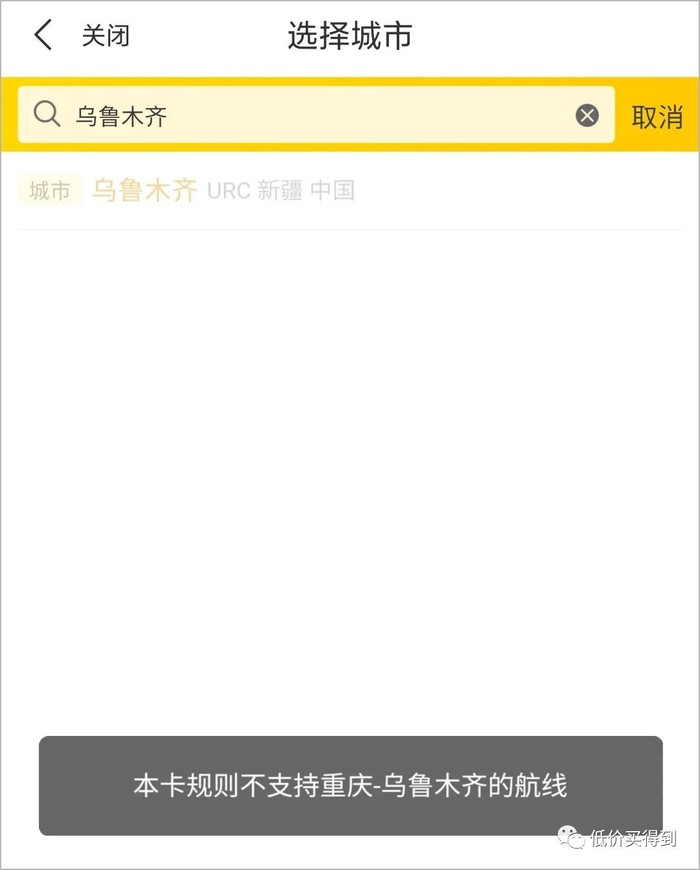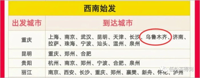 但兑票时却提示“不支持重庆-乌鲁木齐”航线。