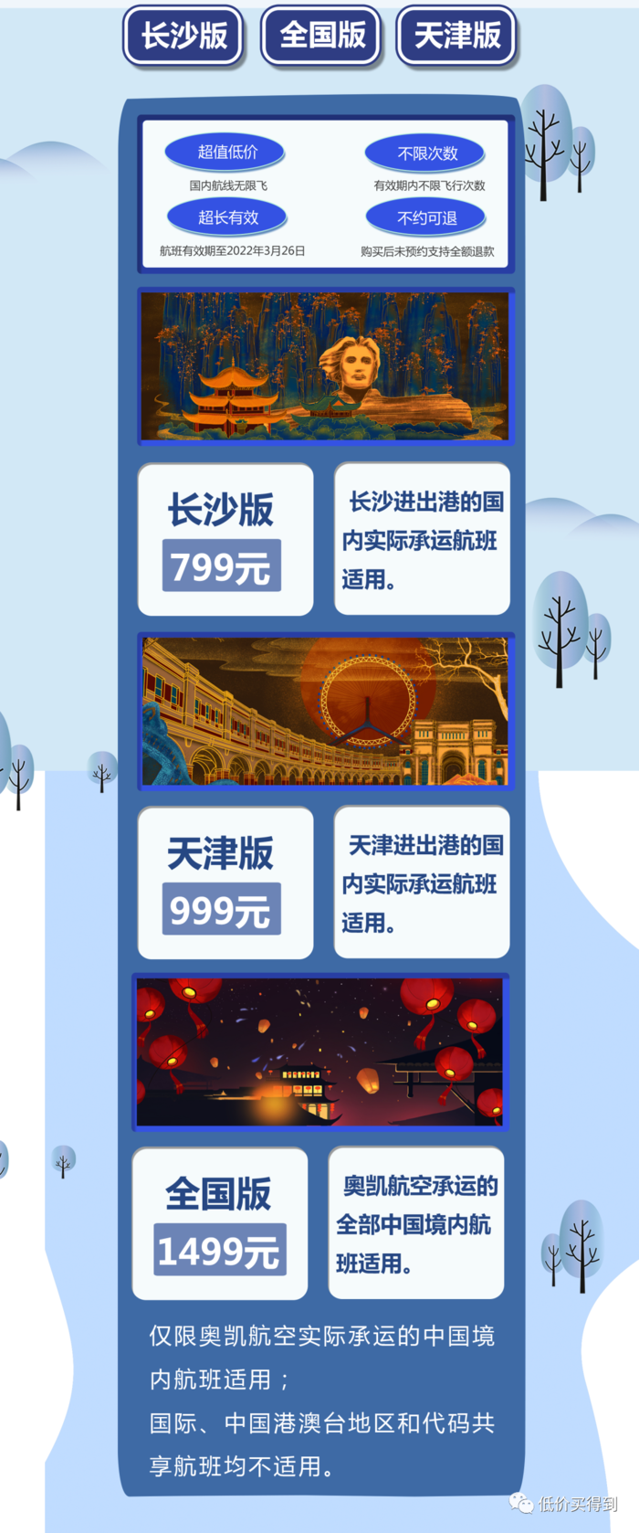 完全没想到,奥凯航空居然在这个时间点,出了一个无限飞,而且可以把南航、海航的无限飞都比下去,尤其是对长沙、天津、南宁的朋友来说。