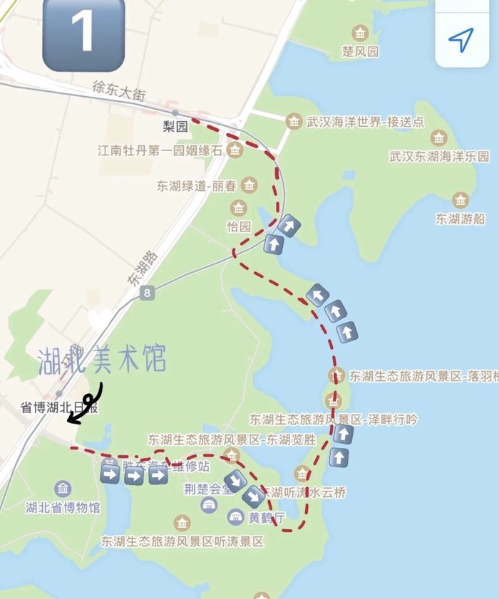 路线:地铁8号线省博湖北日报—【湖北省博物馆】—【武汉美术馆】—【听涛景区】—地铁8八号线梨园