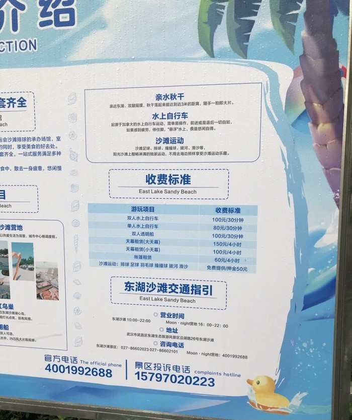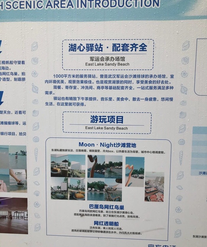 3.沙滩具体内容见后四张图,磨山详细攻略如果有需要我可以在后面更新;