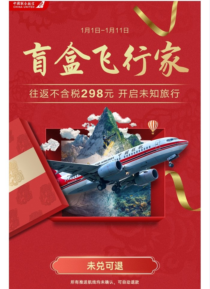或者前往“中国联合航空APP-首页-盲盒飞行家”购买。
