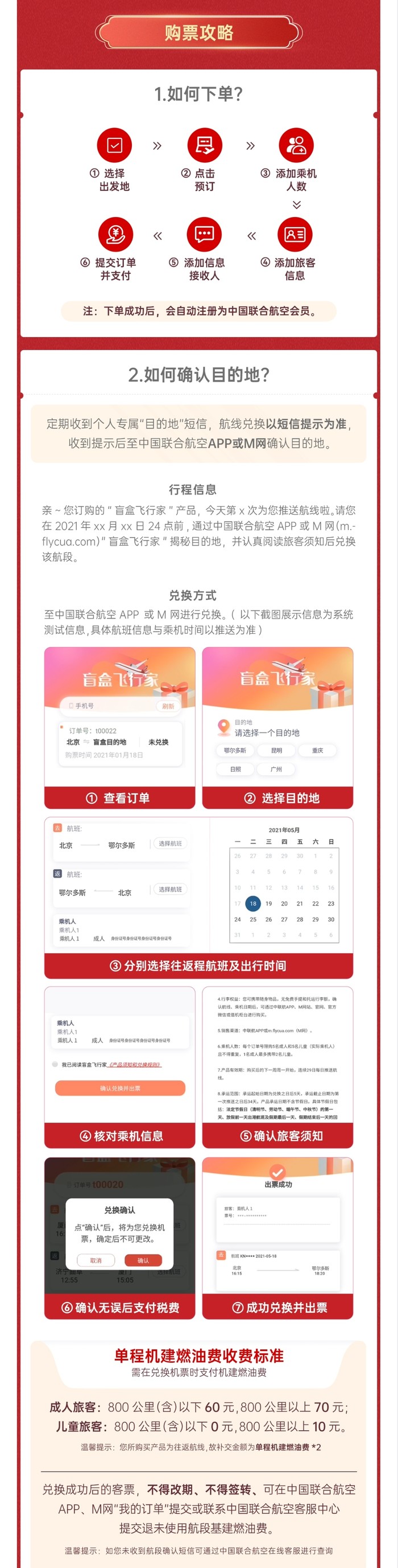 大致介绍:出发地自选,航司定期随机更新目的地,看到适合的航班,就可以兑换机票。每套盲盒可兑换1套往返机票。未兑票,活动结束后自动全额退款。