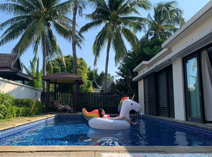 泰式别墅要比低一级的缅甸别墅大一倍,飞猪显示270平米,有一个很大私人泳池,虽然别墅不靠海,设施有些老,但是住起来非常舒服跟安静,所以连续住了三天,躺在独角兽身上睡觉也是很惬意的事情。雅高的白金体验卡可以升级房型。但是我定的时候泰式别墅是直接有特价的活动,所以直接下单,适合想静静发呆的人群。
