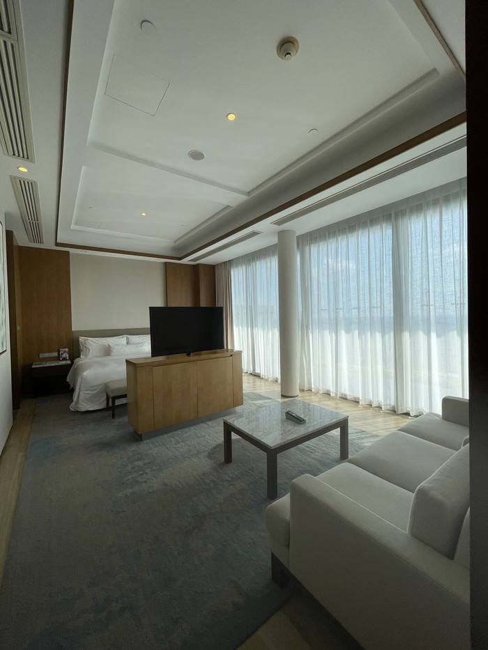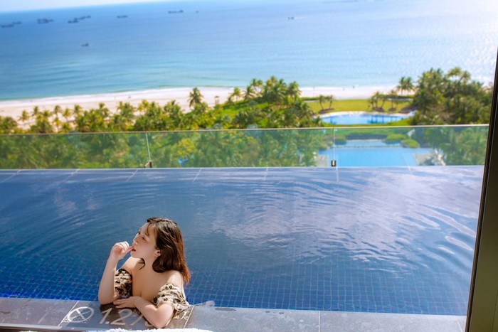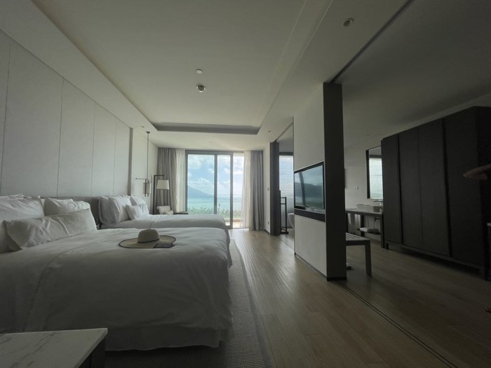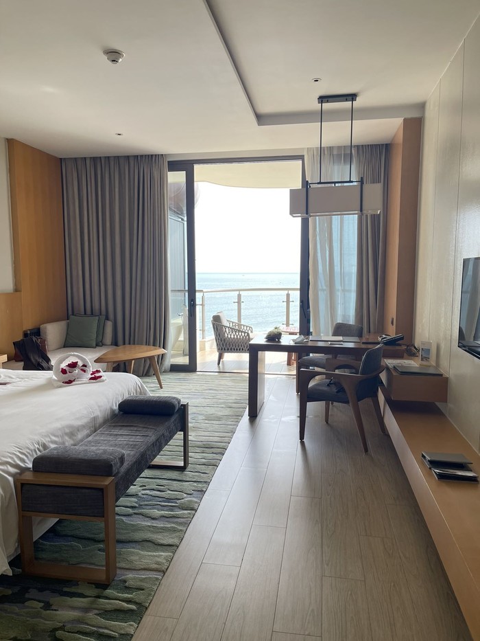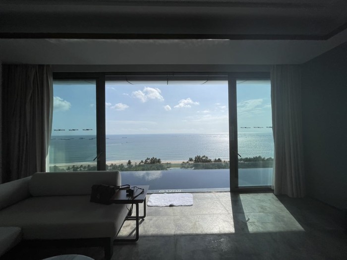 吃完后我们决定继续在陵水住一晚,刷酒店的时候发现网红大使套房当天是有空房的(平时尊享海景跟大使套房都是满的,大使套房只有2套,所以一般都是住满的状态),然后问了前台如果升级到大使套房是多少钱,尊享套房应该是2500多,大使套房是2920,加上之前的基础套房定的比较便宜,当天是1040含双早,大使套房单独定是5000+,所以算了一下大使套房的面积比尊享大一倍,算下来3960还是可以接受的,要知道亚特兰蒂斯跟艾迪逊的入门级房型都要3000+了。咬咬牙就定了,套房面积真的很大,我跟朋友一人睡一间房间说话都是要靠喊才能听到。这个套房值得几个小姐们过来体验一晚,住4个人妥妥的没问题,分摊房租一个人1000都不到。