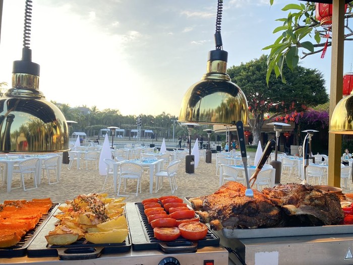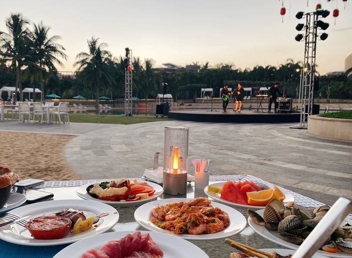 接驳车的司机也非常热情,因为我们不是这里的住客,出门打车的时候等了好久,司机碰到我们还特意说现在打车很堵,可以先载我们去门口,吃完中饭可以去旁边的免税店逛逛,接着晚上我们就来到了之前预约好的威斯汀海鲜烧烤自助,一直从六点吃到了九点半,大众点评团购是2人588,相比艾迪逊会便宜一些,餐品也不错,龙虾会单独给你上,不过因为晚上又是室外,建议吃多少拿多少,不要一次性拿太多,凉了味道口感都会差一些。