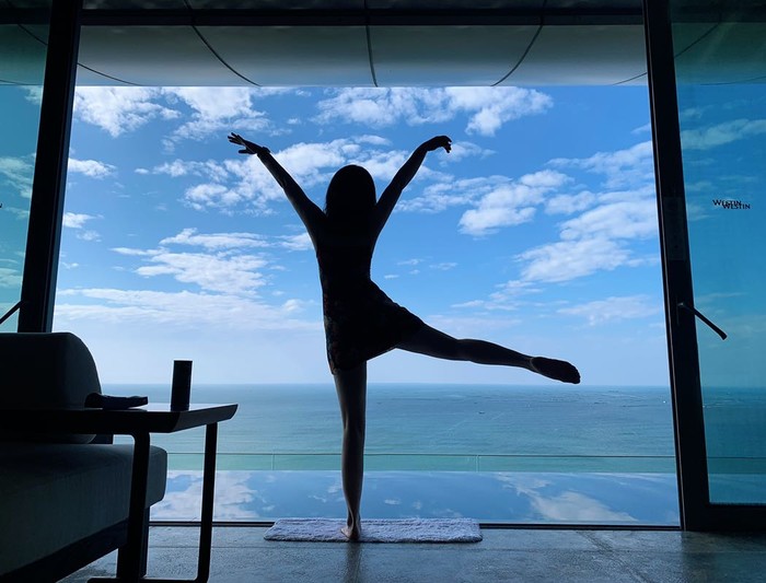 次卧的门拉开也是无边泳池,但是因为我们一般都是待在主卧跟客厅,所以这个门我们没有拉开。