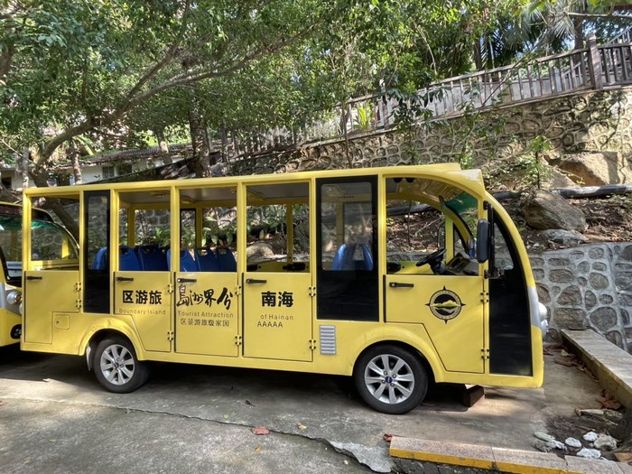 岛上的接驳车,游客跟住户都可以坐,住户只要门卡就可以免费坐,游客需要买票,好像一人40元。其实岛上不是非常大,一边逛一边玩也是挺不错的,有专门的路道可以选择行走。