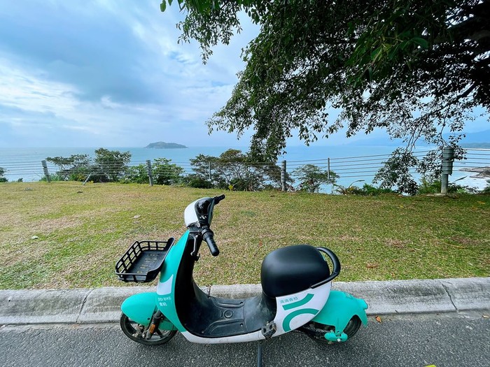 酒店对面就有电动车可以扫,因为石梅湾交通也不是非常方便,所以租车出行或者电驴出行都是比较方便的。