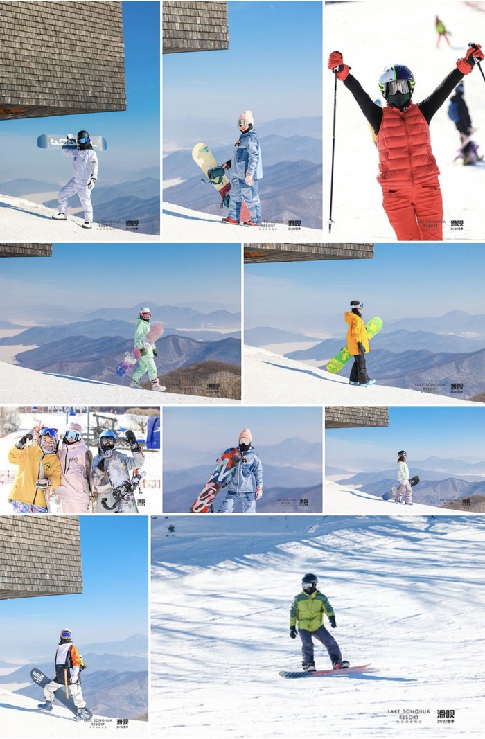 山顶森之舞台270度雪场视野好出片。舞台外与g索旁,背景可看松花湖。山顶观景台。小剧场和刺猬乐园都是出网红照片的地方