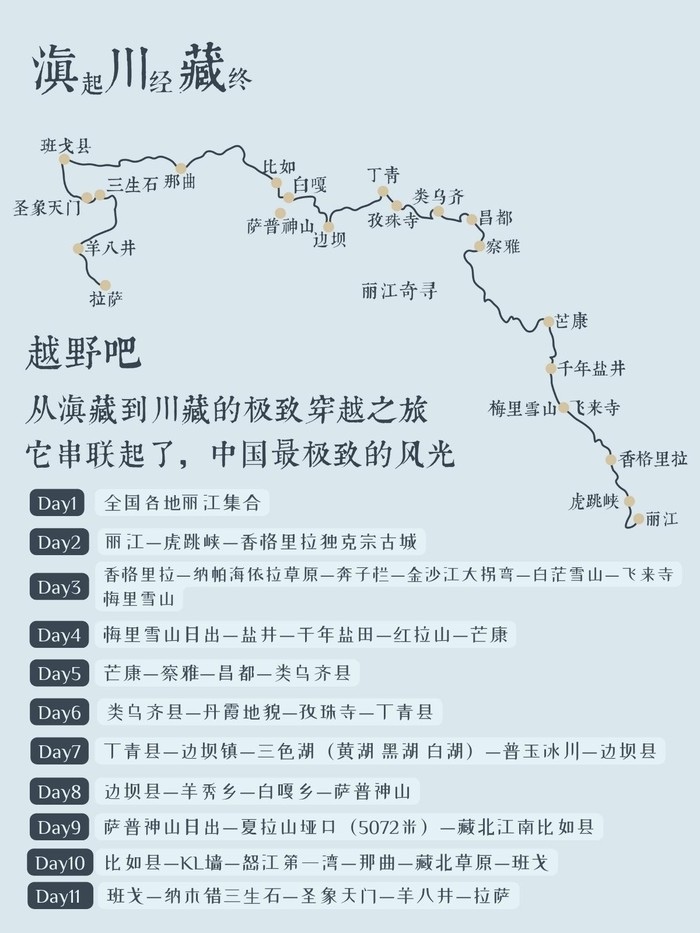 【这条路线,献给懂旅游的你】《中国国家地理》的才华烨主编这么形容「滇藏线」与「川藏线」这2条公路盘绕在横断山脉的深切河谷之中;它们跌宕起伏,是一条“眼睛在天/堂”的路线。