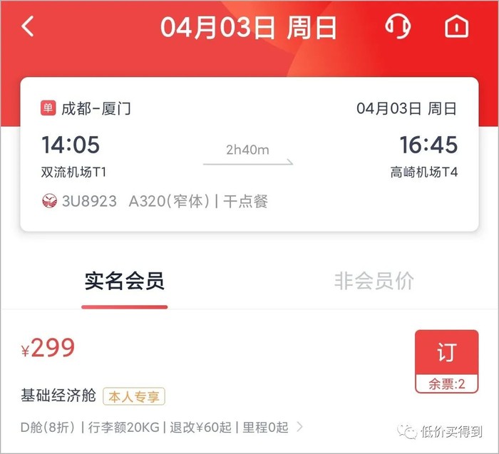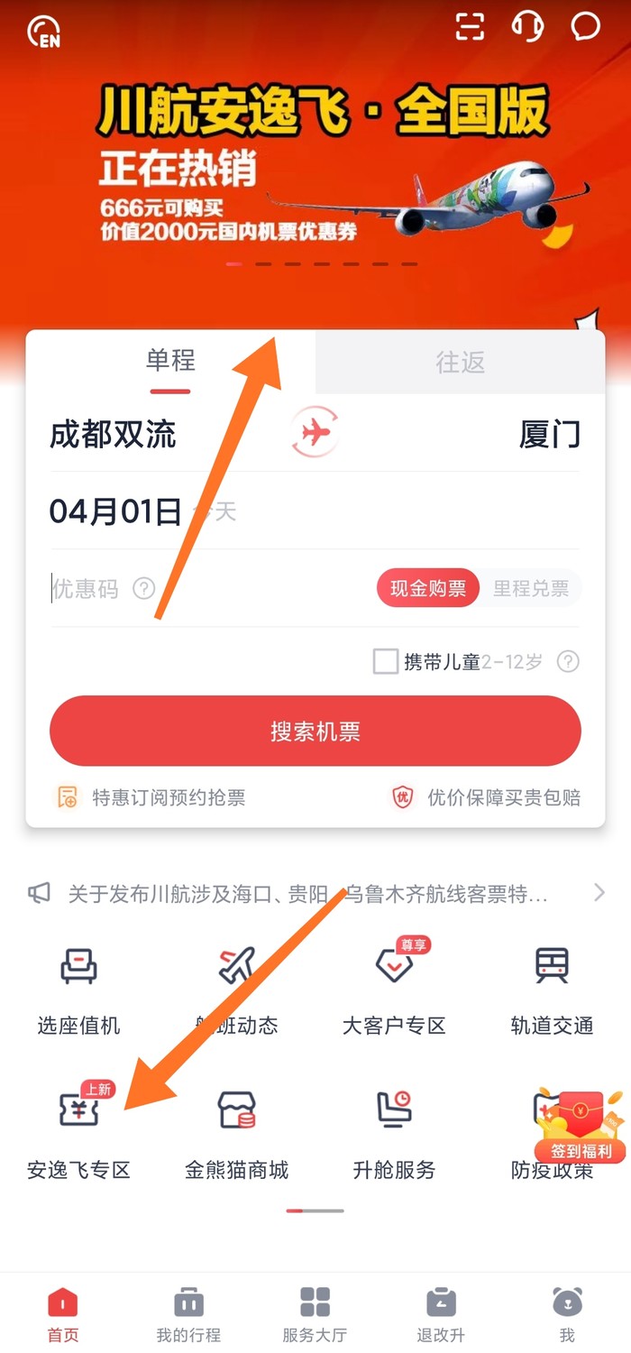 重点在于:川航会员日很多进出川渝地区的特价票,实测都可以搭配川航安逸飞使用,叠加之后,单程票价低至 0元~99元!(后文有实测)