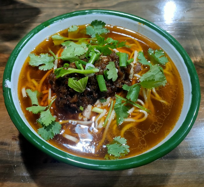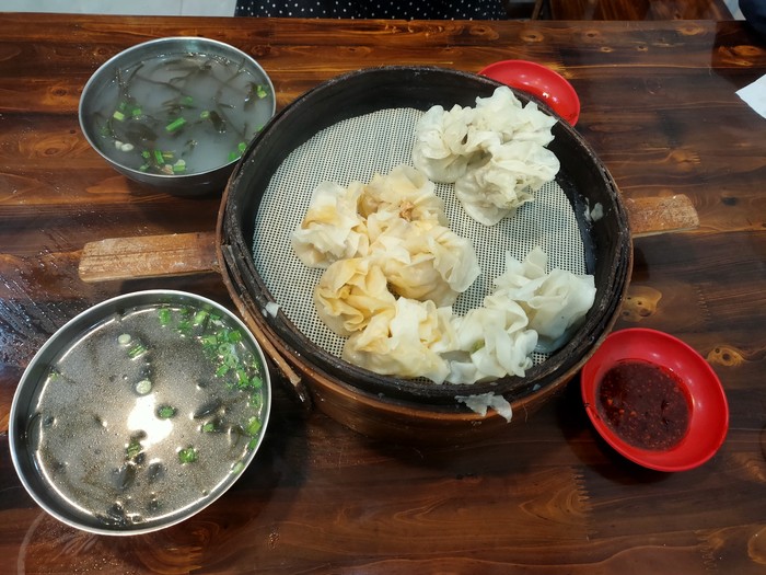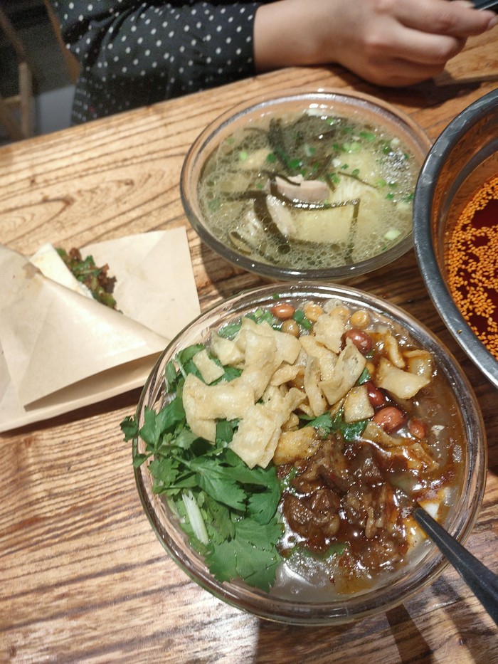 先去吃了海带汤和烧麦,又换了一家吃了脑花面,干杂面,多的最后一个是店家送错了的,我刚把香菜给人家扔了,人家拿回去了哈哈哈,尴尬