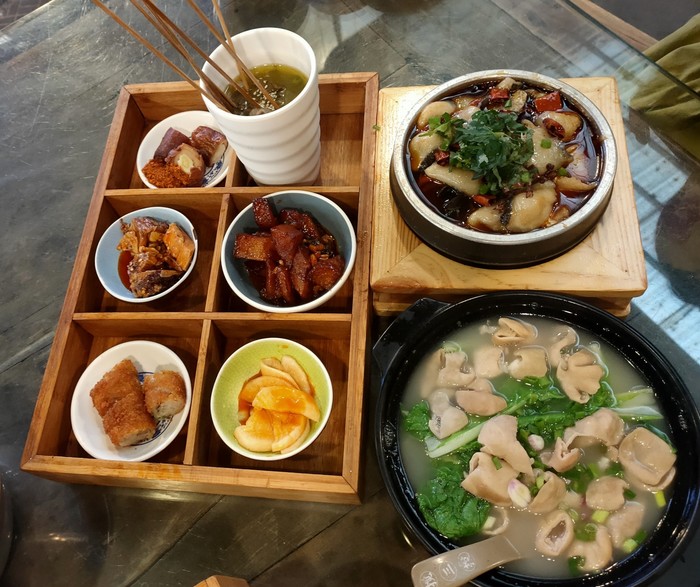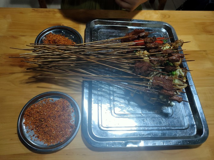 午餐打车去远一点的地方吃了鱼汤,烤串,烤鱼片,真的,中午别这么吃,太油腻了