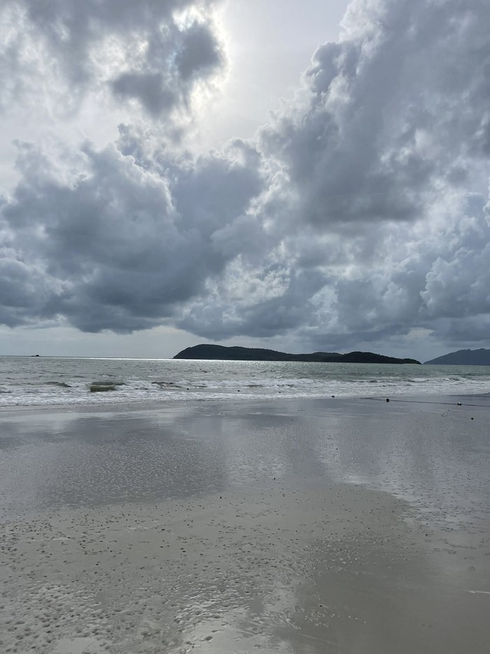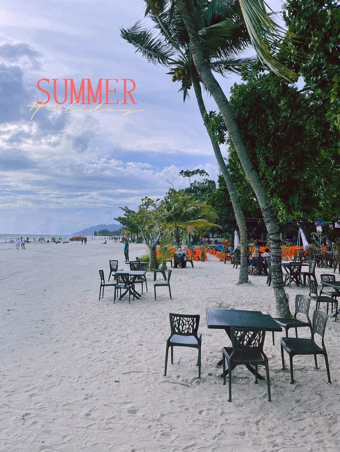 这一片海滩的人不多,有些海上项目正在进行,我看着地图上显示著名的珍南海滩要走四十分钟,但是就沿着这条沙滩一直走就行了。想了想觉得可行便果断边拍边走了起来,可是走到三分之二的时候被一大片礁岩挡住了去路,实在不想走回头路,一咬牙小心翼翼手脚并用的从礁岩上爬了过去,还不小心被一个浪打湿了,拖鞋也被划断了,好在有惊无险的来到了珍南海滩。