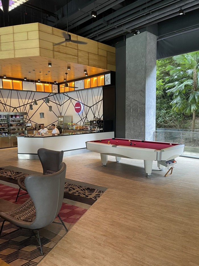 在挑选很久之后选择了Aloft Langkawi, 两晚308新币,这个性价比是真的真的很推荐很推荐,内部环境很好设施很新房间里也很干净,大厅有桌球,小酒吧,mini吧等等,餐厅泳池健身房儿童游乐室都在三楼。