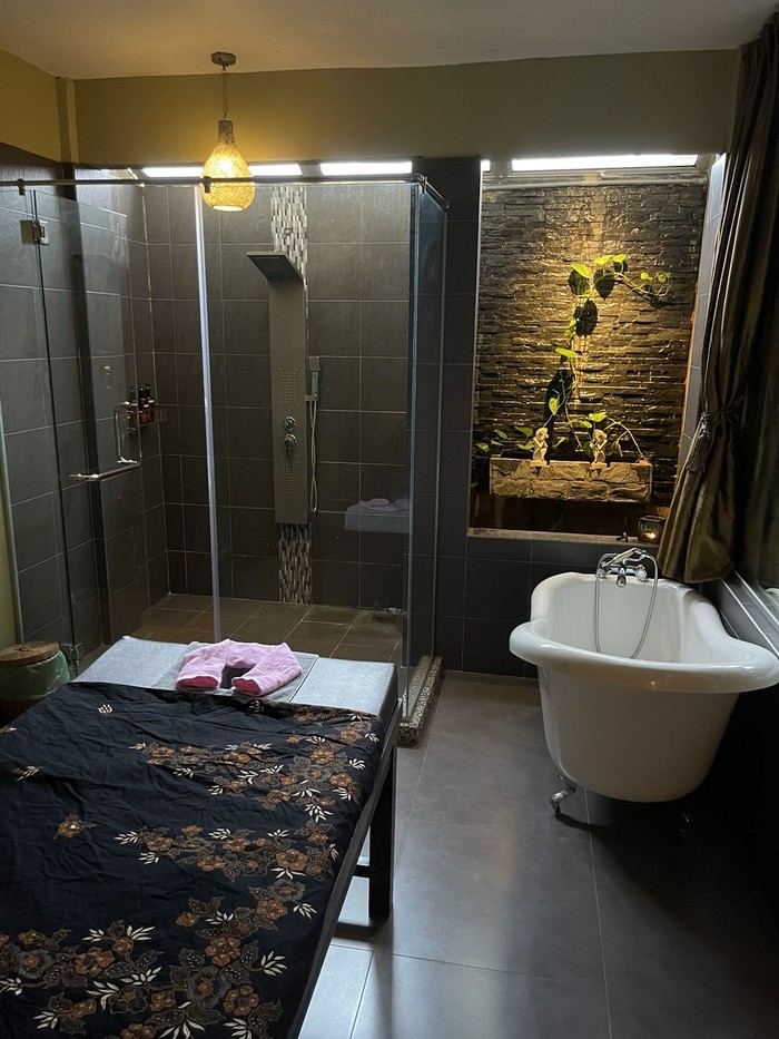 这家Spa离酒店几分钟车程,很好找,门口看起来一般般,进去以后环境很好,先给了杯热姜茶让我坐着选要什么按摩,还贴心的让我把帽子拿进来放着免得突然下雨淋湿了。