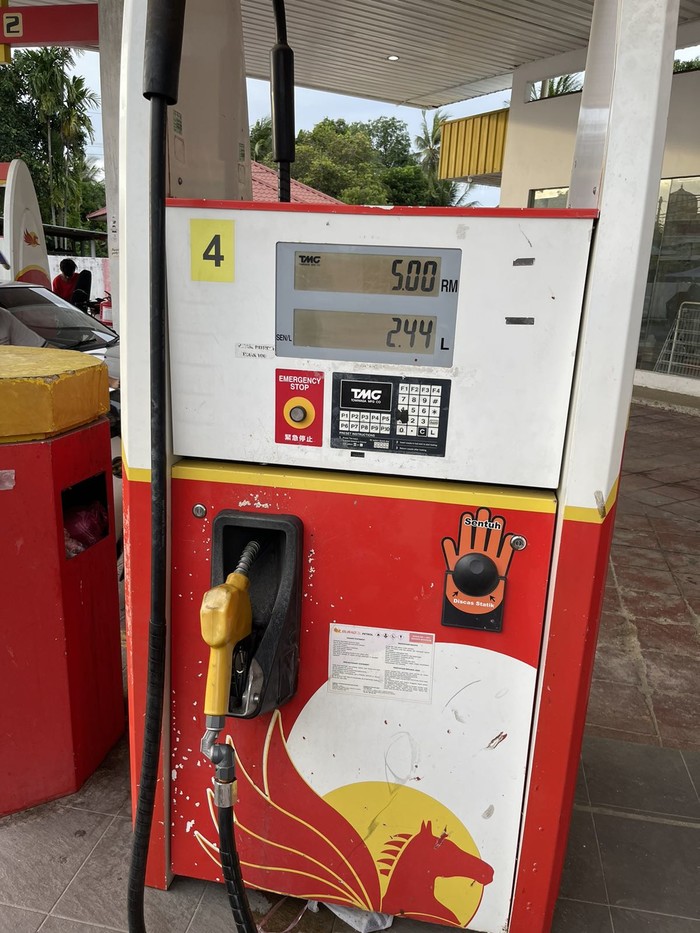 (加油站,5马币2.44L)