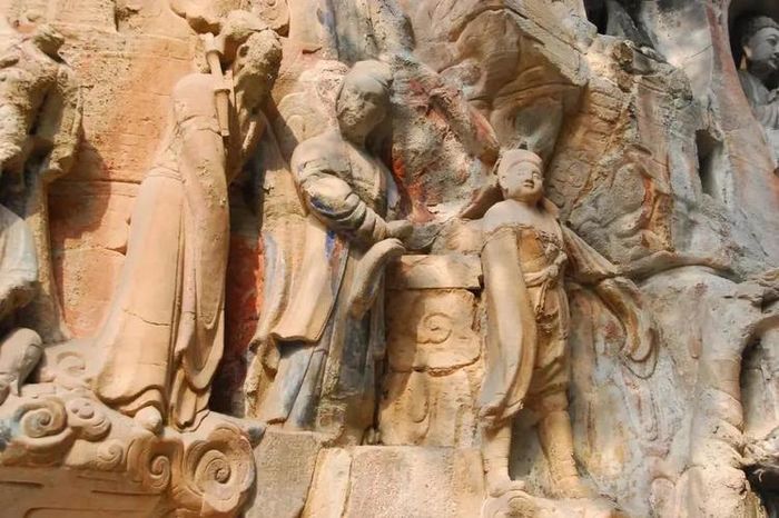 大足石刻中“父母恩重经变相”又称父母恩重经“十恩图”,连环画式地刻出父母含辛茹苦抚育子女的十组雕像,体现了母亲生育子女的艰难、父母养育子女的不易,堪称表现父母含辛茹苦养育子女、恩重如山的典范之作。每一幅造像都是青少年所熟悉的生活情节,青少年在观赏艺术的过程中,理解父母的艰辛,懂得感恩父母,感受精神的洗礼。