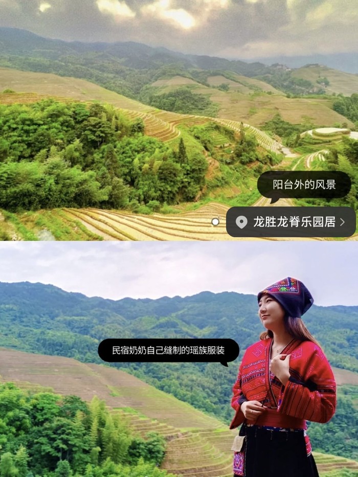 龙脊乐园居:观景房170+,阳台就可以看到梯田的全景(图6),提供接送服务和民族服饰拍照(图6)