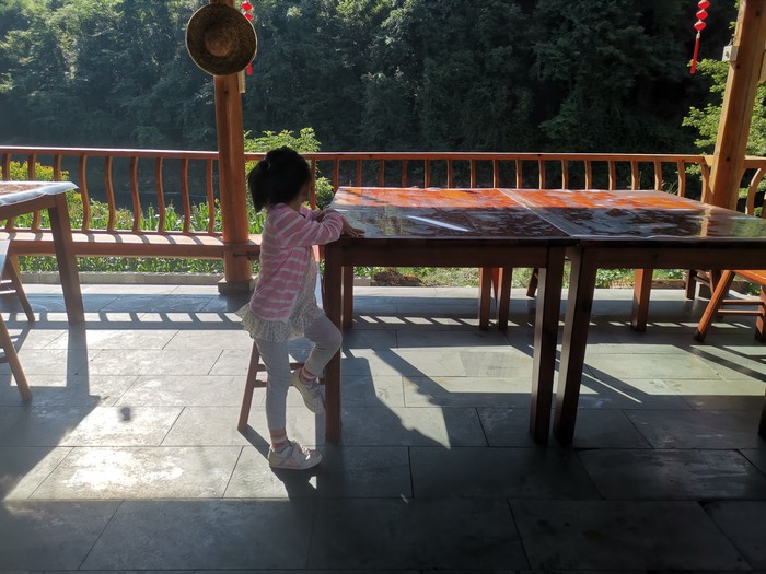 房子后面就是太平河,河水超级干净,老板说那个河水可以直接饮用。河里的小鱼儿活蹦乱跳。闺女都忍不住去游泳了。