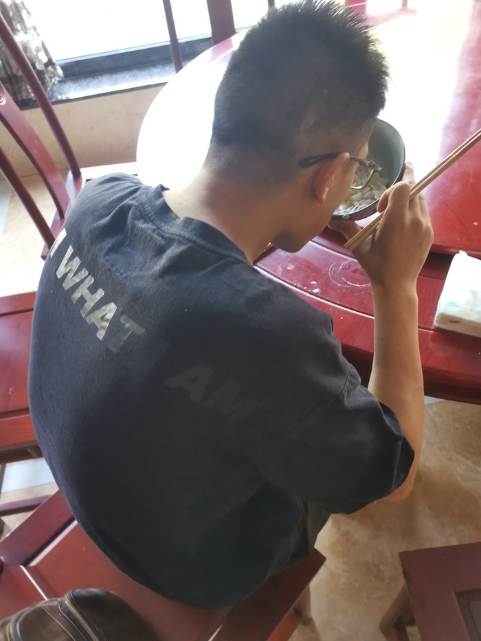 最感人的还是早餐,米粉十元一碗,吃不饱可以无限加,煎鸡蛋一元一个。老公吃了三碗,我们一共才花了22元,真是难以置信。