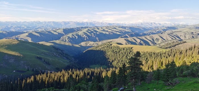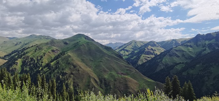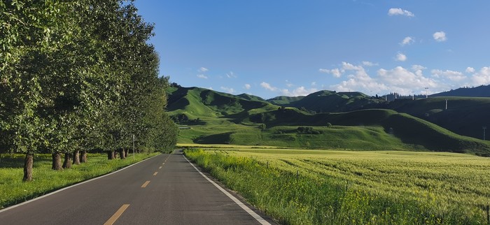7,因为正是7月中旬,独库一路草木翠色映天,那拉提景前后途中的高山草原,起伏而丝滑