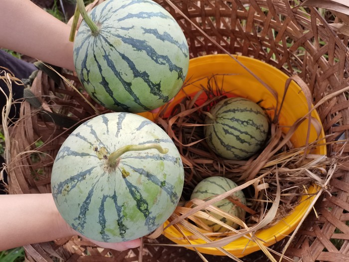 西瓜是我那多才多艺的弟弟自己种的喔,品种是8024,