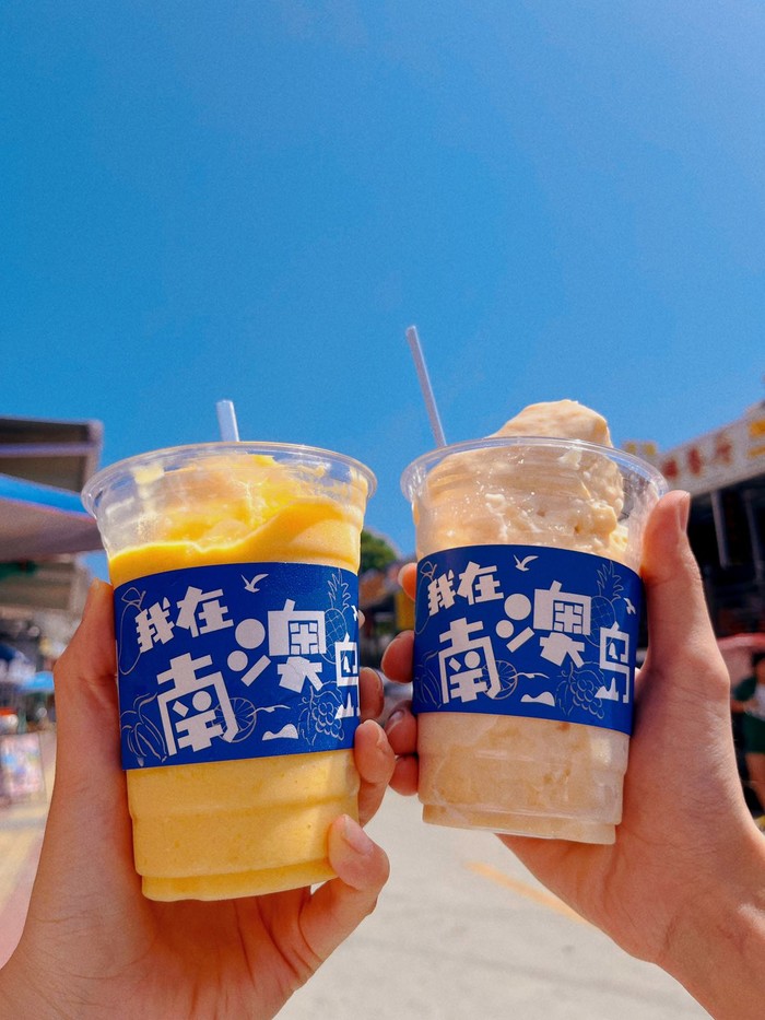还有心心念念的想打卡南澳岛打卡果汁冰公司的果汁,跟着导航走莫名其妙找到另外一家店也是有这个奶茶杯套的,糊里糊涂就买了,后来才发现买错了一家……