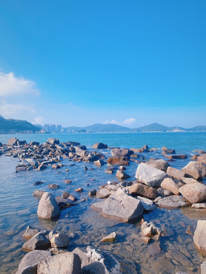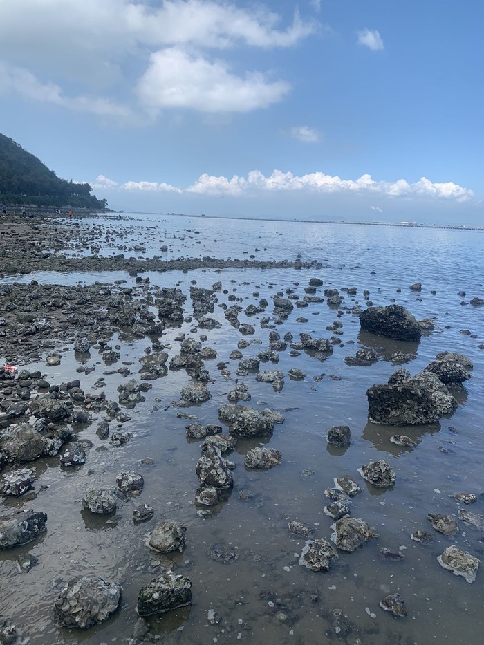 万分庆幸当时选了这条路线,因为后来才发现钱澳湾前的沿海路因为交通管制变成了单行道,顺时针走是过不去的。更幸运的是,我们在这条路线上,偶遇了一片赶海的海滩——