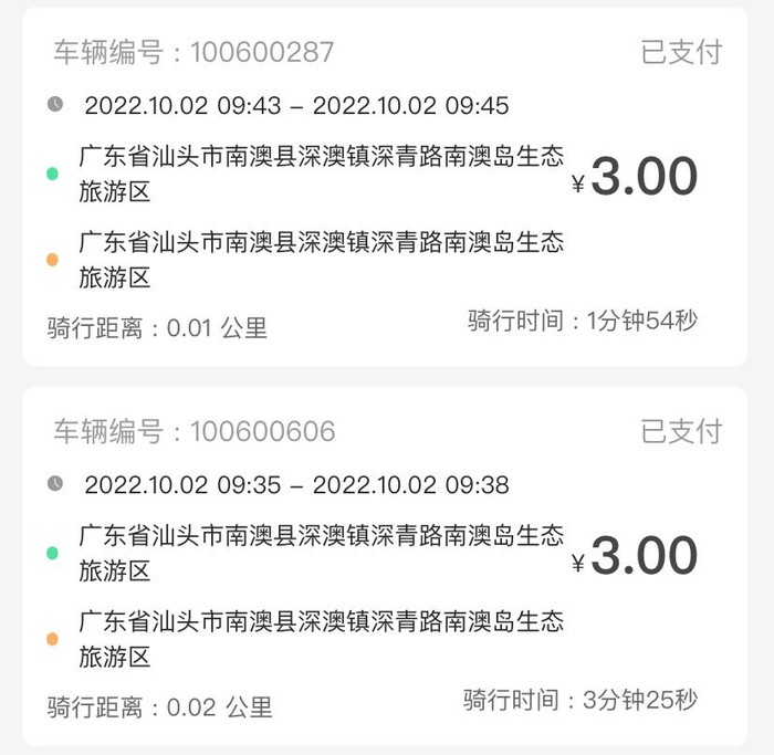 听着海浪的声音入睡,第二天一早去青澳湾附近的做个核酸,因为距离住的地方比较近,就想骑电动车,但是不知道为啥扫了两辆电动车都启动不了,不是转一下右把手车就会起飞的吗,是我打开方式不对吗?南澳岛欠我们六块钱,记在小本本上。