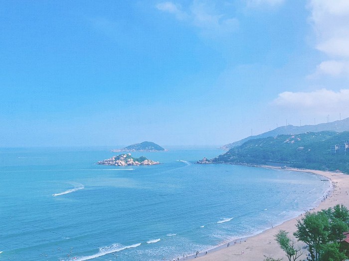 此行匆忙,没怎么做攻略,在登岛之后才搜了一下哪个地点适合看日出。四点多上南澳大桥,再开一个半钟到青澳湾,这个时候路上已经有许多车在登岛了,桥上还看到一起追尾事故,这要搁白天,南澳大桥肯定就堵得通红了。到了青澳湾的时候,天已经蒙蒙亮了,我们兴致勃勃来到青澳湾海边等待日出,却发现当天阴云密布,太阳躲在阴云后面了。失望过后,才发觉通宵开车已经精疲力尽,在美团上找了一圈酒店民宿都已经被订满了,最后找了一家在山上的由民居改建的钟点房,五个钟150块钱,砍砍价最后只收了120块钱。