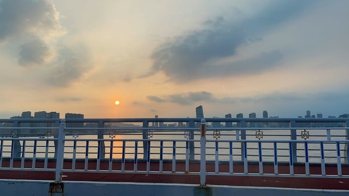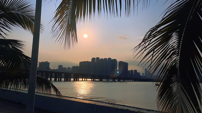 在宏海湾花园公交站与格力口岸公司这一段路线可以拍到夕阳