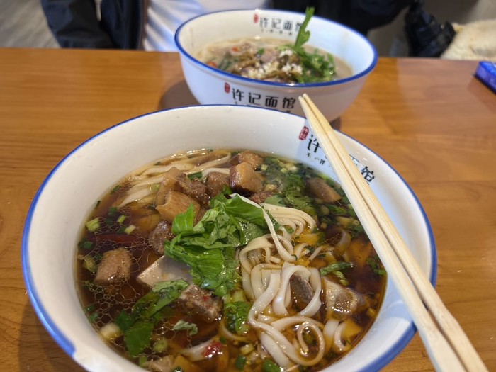 早餐:酒店往右拐走个1min就到啦 点了排骨红烧肉粉 湘乡特色鲜肉粉 还不错也