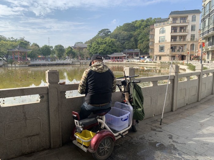 逛的时候还遇到一个阿叔,在荷塘钓鱼,阿叔本地人,很健谈,刚过去他就上钩一条红色的鱼。