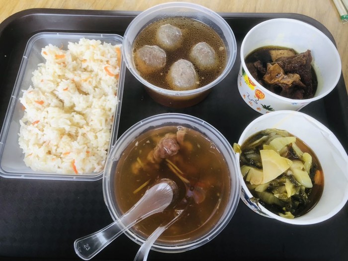 两个人点了咸饭、咸菜、红烧牛排、牛肉羹、牛肉丸。早饭吃的是西街上的远芳小笼包还没消化,所以中饭点的不多。牛肉煮的嫩,也入味。肚子虽然不饿,也吃了个精光。