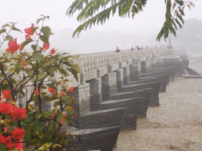 第三天原定早点出发,结果女儿身体不舒服。打的去了洛阳桥。洛阳桥是北宋年间建的跨海大桥。古代四大名桥之一。我们去时正是落潮之时。所以桥基看的很清楚。